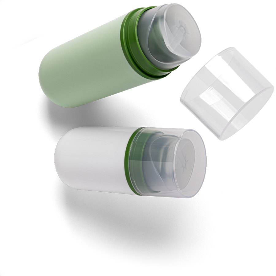 Updating our best-selling airless with an alternative container shape. DOSA/R has a rounded bottom for an extra curvy look, it is matte-from-mold and ALL-PLASTIC.